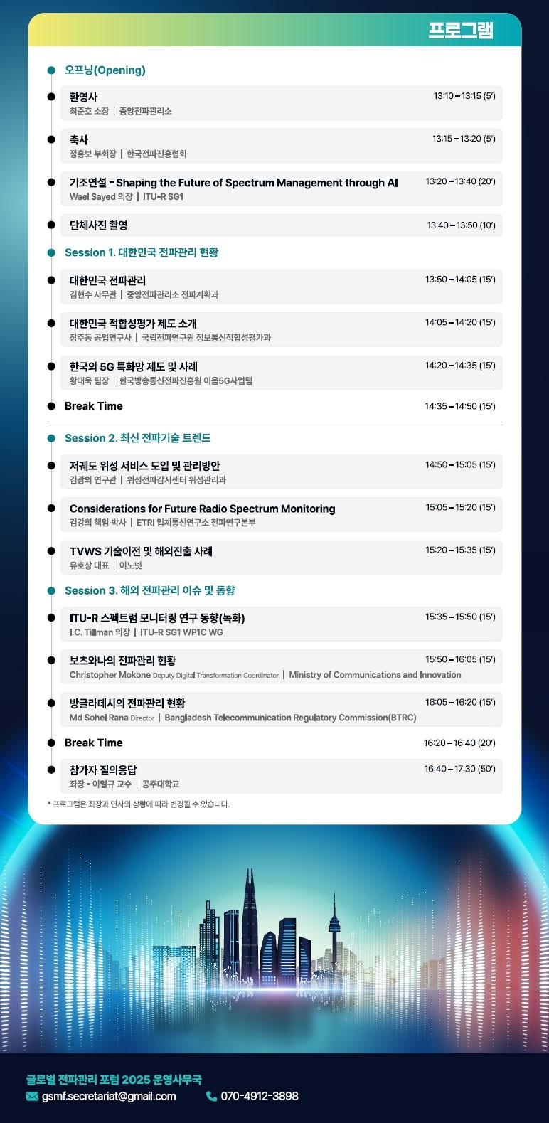 | 85 | (GSMF2025) 글로벌 전파관리 포럼 2025 | | 2025.11.07 | 106 |