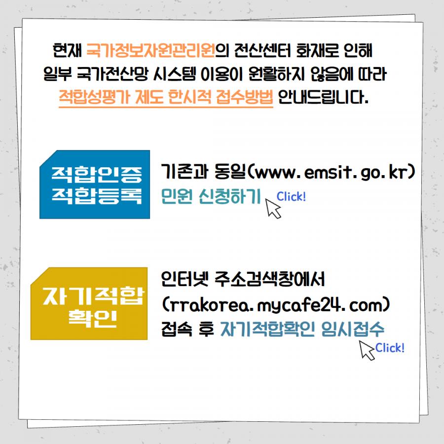 ☞ '자기적합확인 선언' 임시 접수 안내
